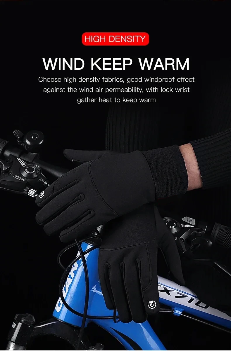Autumn Winter Outdoor Cycling Gloves Gym Fitness Sports Running Warm Touch Screen Nonslip Gloves Motorcycle Gloves Men Black